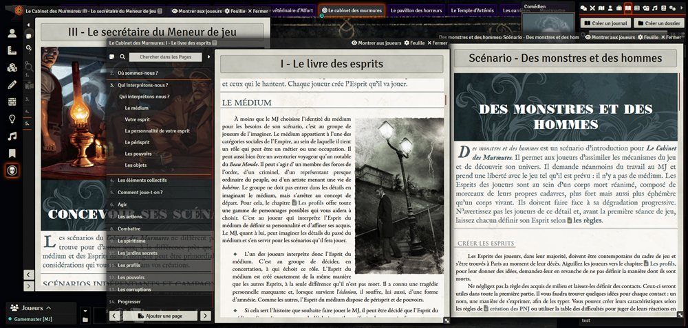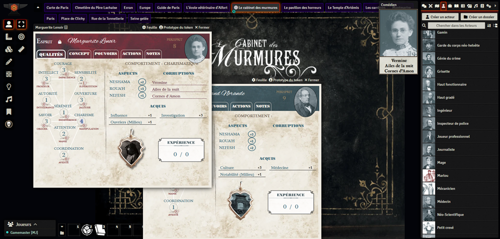 Ce module doit être utilisé avec le système Cabinet des Murmures et ne fonctionne qu'à partir de la version 11 de Foundry VTT.