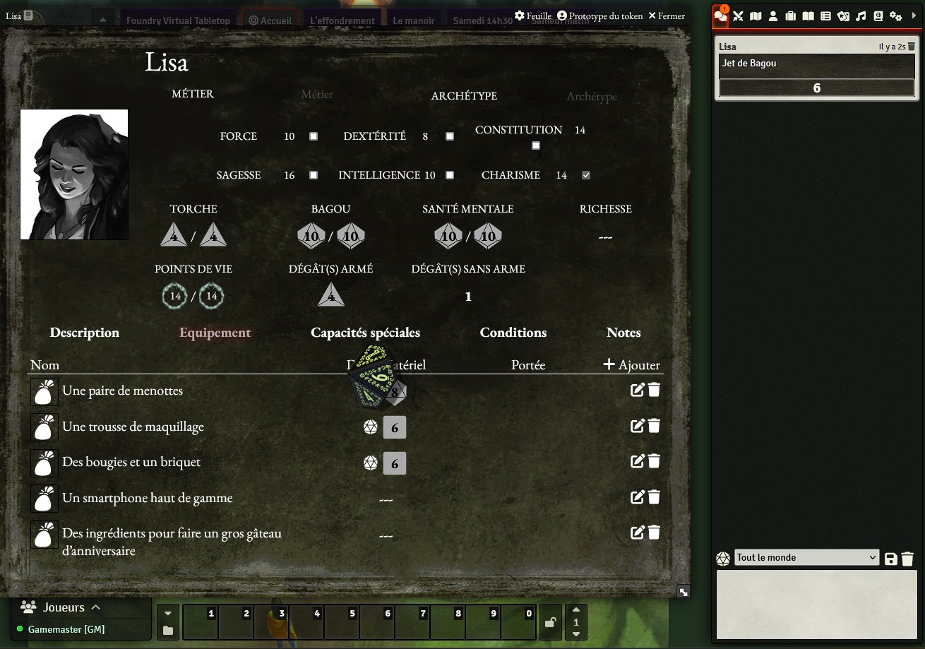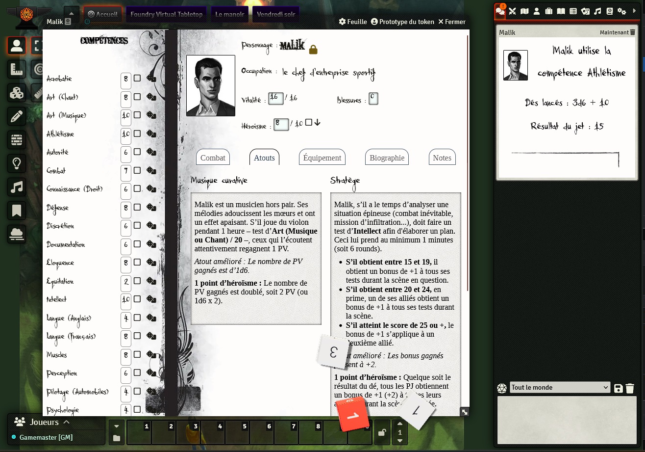 - Les objets et atouts des personnages