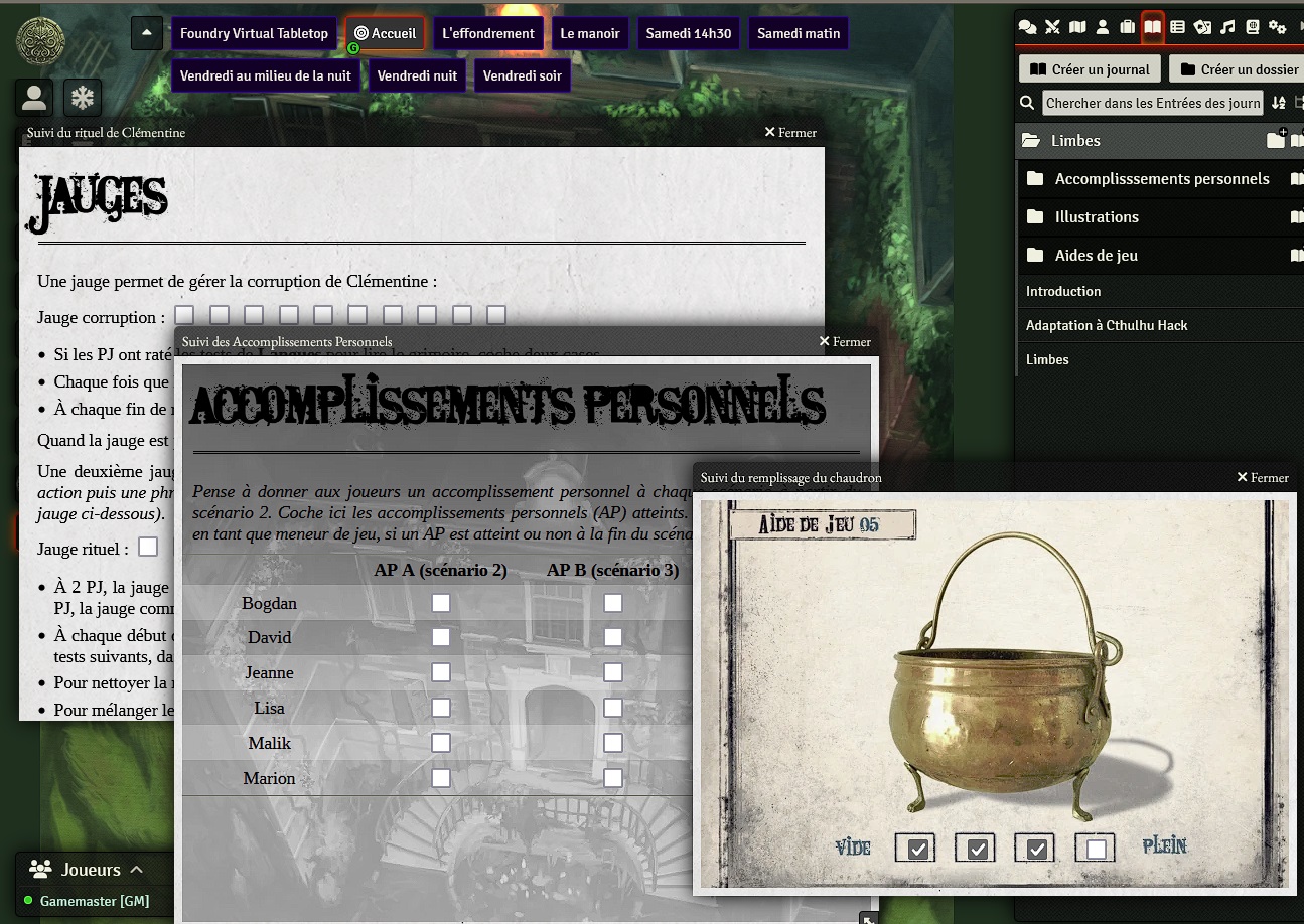 Le module Foundry VTT Limbes comprend l'adaptation de la campagne d'horreur Limbes. Vous pouvez l'utiliser soit avec le système Clé en Main soit avec le système Cthulhu Hack.