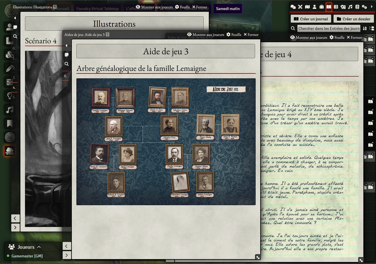 - 32 entrées de journaux contenant l'intégralité de la campagne, les accomplissements personnels et les aides de jeu