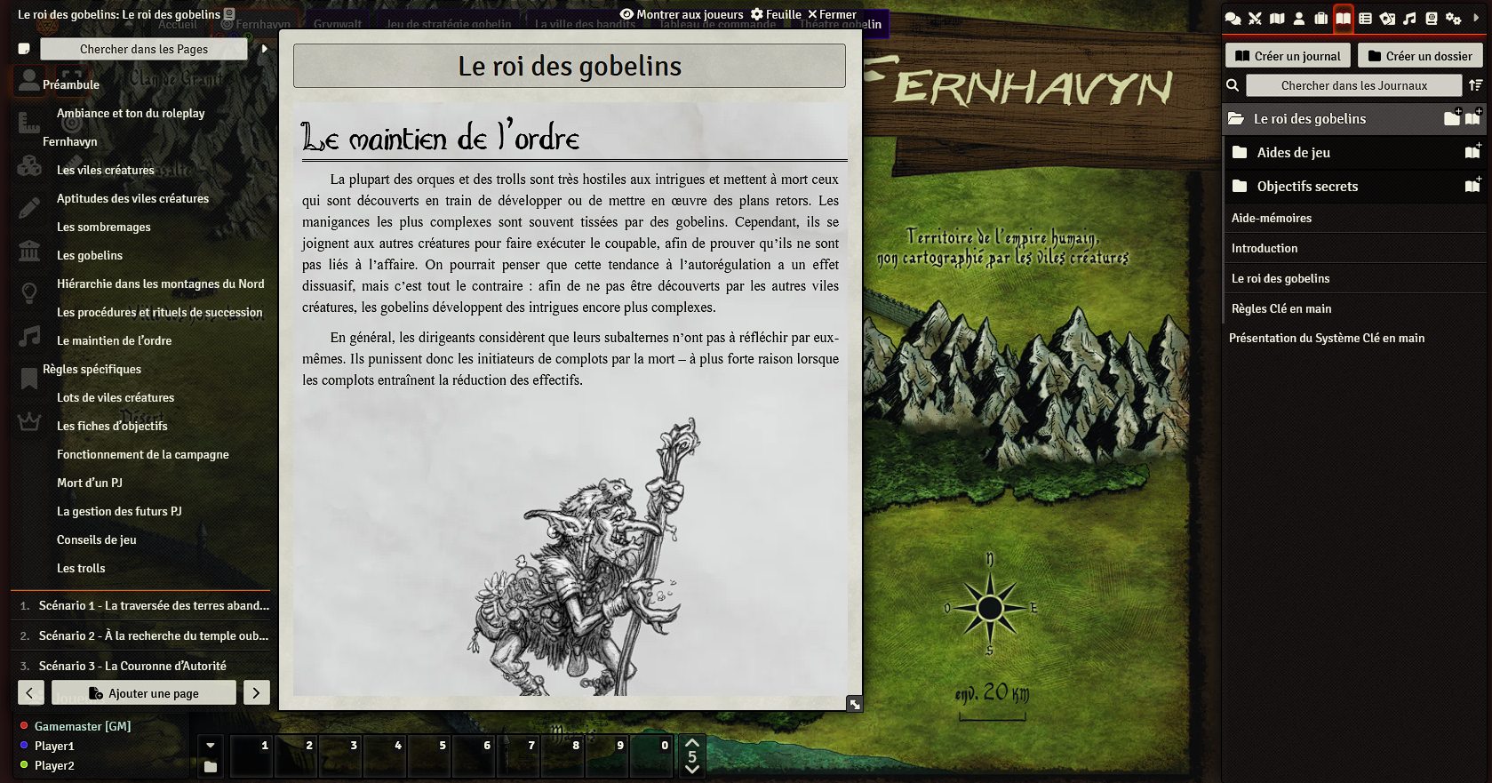 Le Roi des Gobelins est une campagne de jeu de rôle en cinq sccénarios, motorisée par le système Clé en Main.