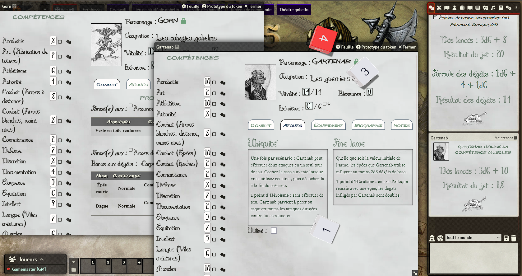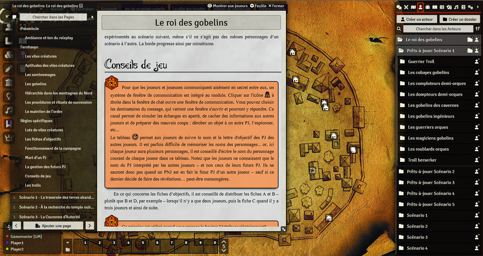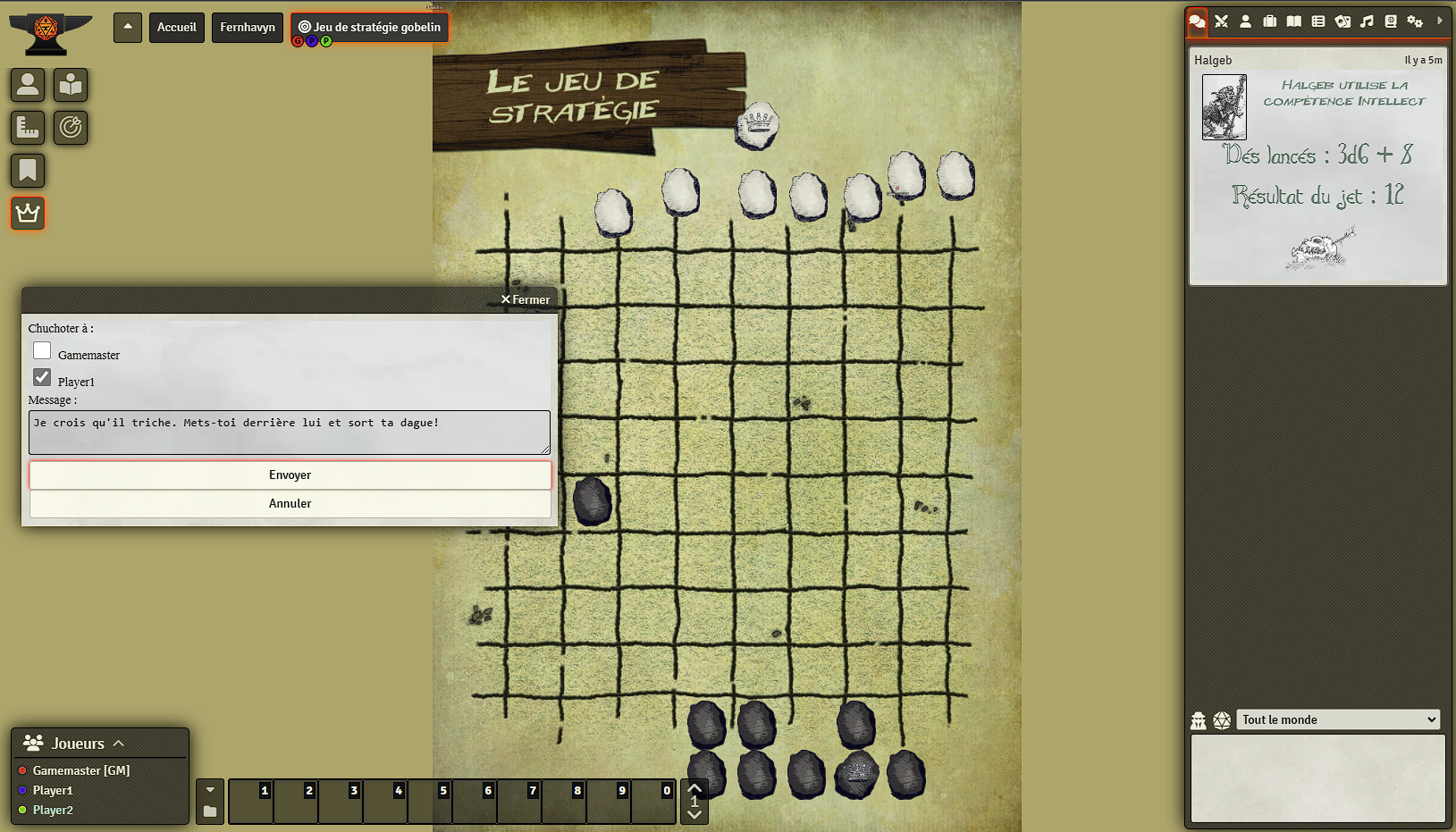 - Un mécanisme de fenêtres de discussions secrètes pour simplifier les complotages des PJ