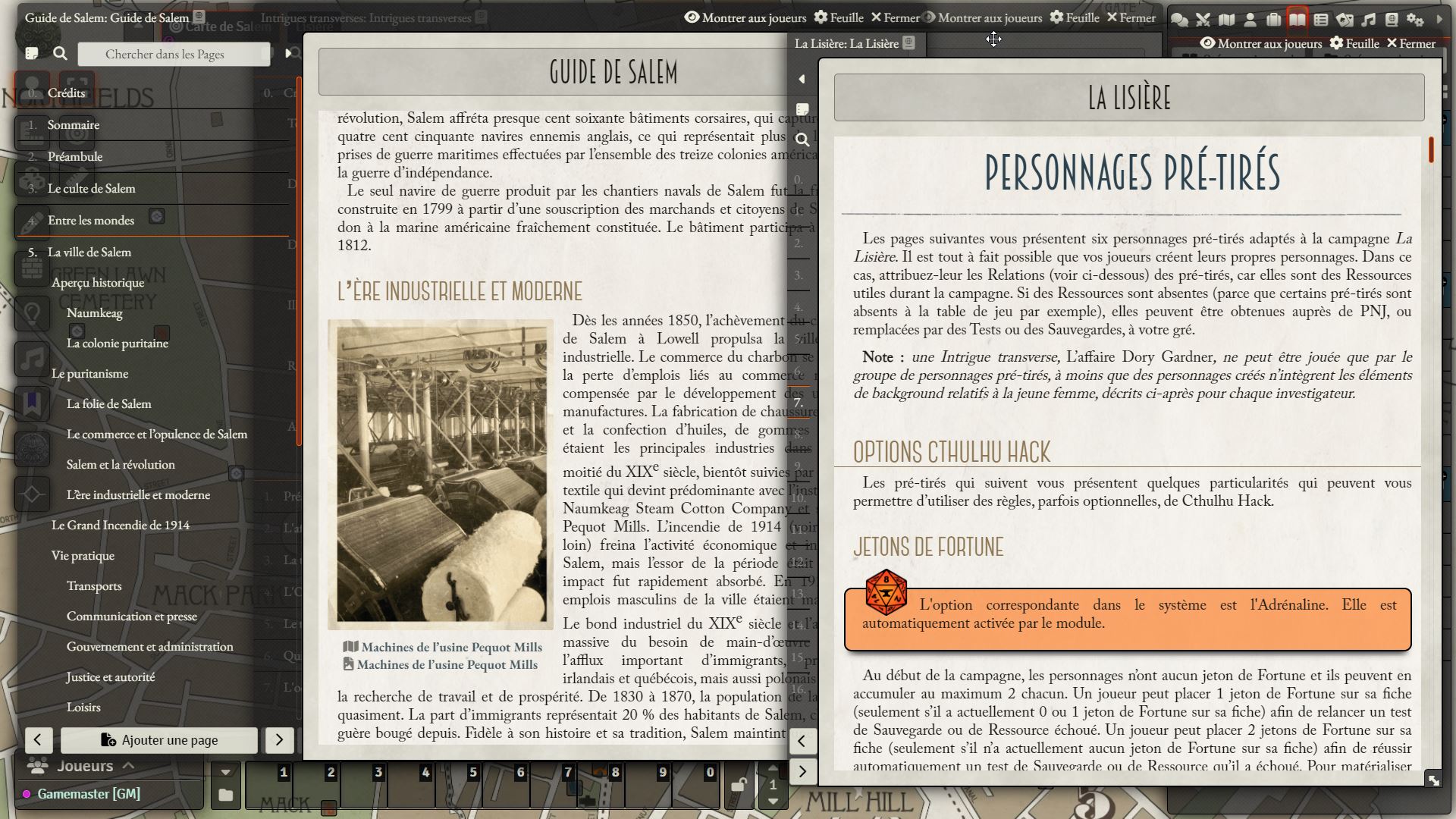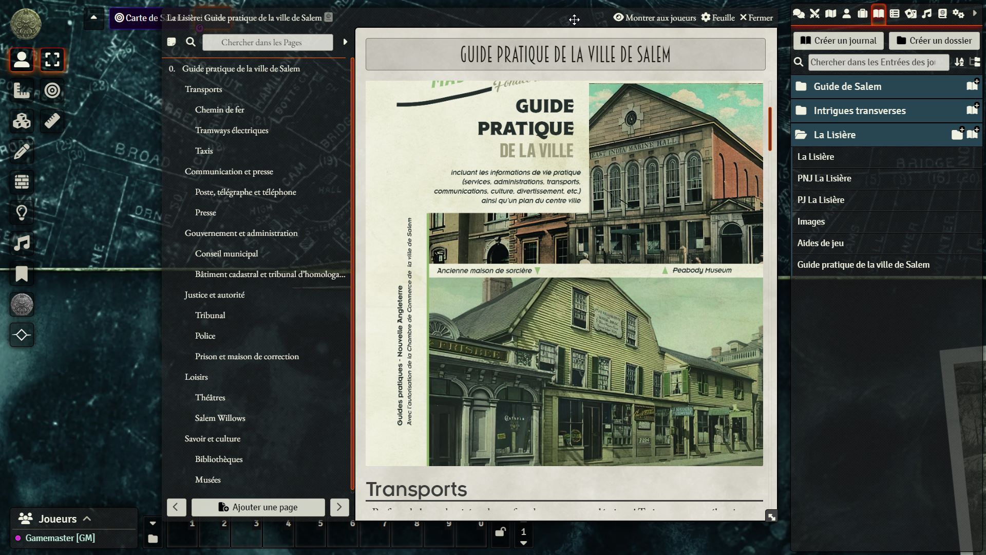 Ce module pour Foundry VTT contient l'intégralité des livres La Lisière, Guide de Salem et Pack du MJ pour la Lisière. Ce module contient ainsi l'intégralité de la campagne et des accessoires de jeu intégrés à Foundry. Le supplément Aventures à Salem constitue un autre module, qui doit être acheté séparément.