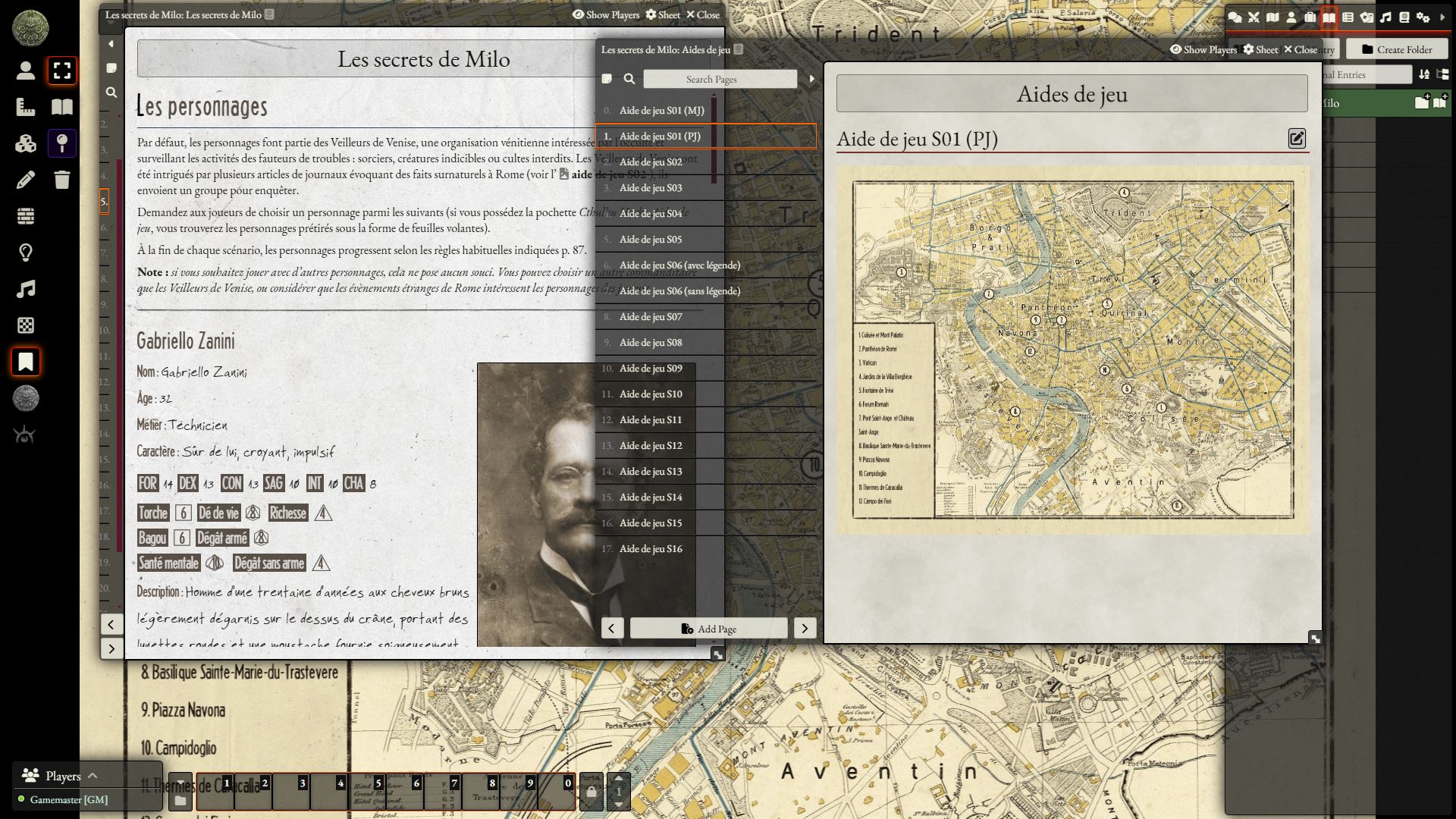 La campagne Les secrets de Milo est une suite de trois scénarios introductifs pour Cthulhu Hack. Ils peuvent être joués avec les prétirés fournis. Elle se déroule tout d’abord en Italie dans les années 1920 et mènera les investigateurs jusqu’à Babylone où ils affronteront une menace millénaire. La campagne Les secrets de Milo s’articule en trois scénarios aux ambiances distinctes. Elle permet de faire un tour d’horizon des différentes manières d’aborder le Mythe de Cthulhu.