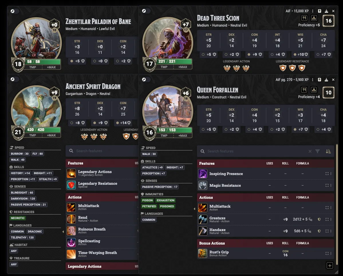 The Adventures in Faerûn source book on Foundry Virtual Tabletop includes 426 gorgeous and high-resolution tokens which are integrated with the Dynamic Token Engine. Tokens using this engine are dynamically rendered with integration for special visual effects, ring highlights, UX prompts, and other visual indicators that facilitate gameplay and enhance immersion.