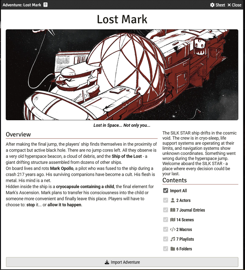 A fully playable module for the Mothership 1st Edition tabletop role-playing game.