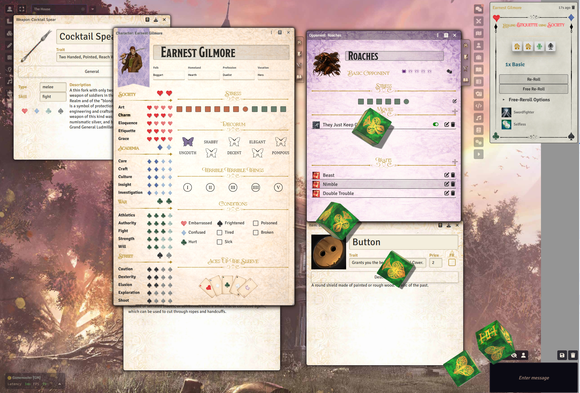 Since the system includes two custom dice themes (Household Volume I and Household Volume II), this system requires the module Dice So Nice.