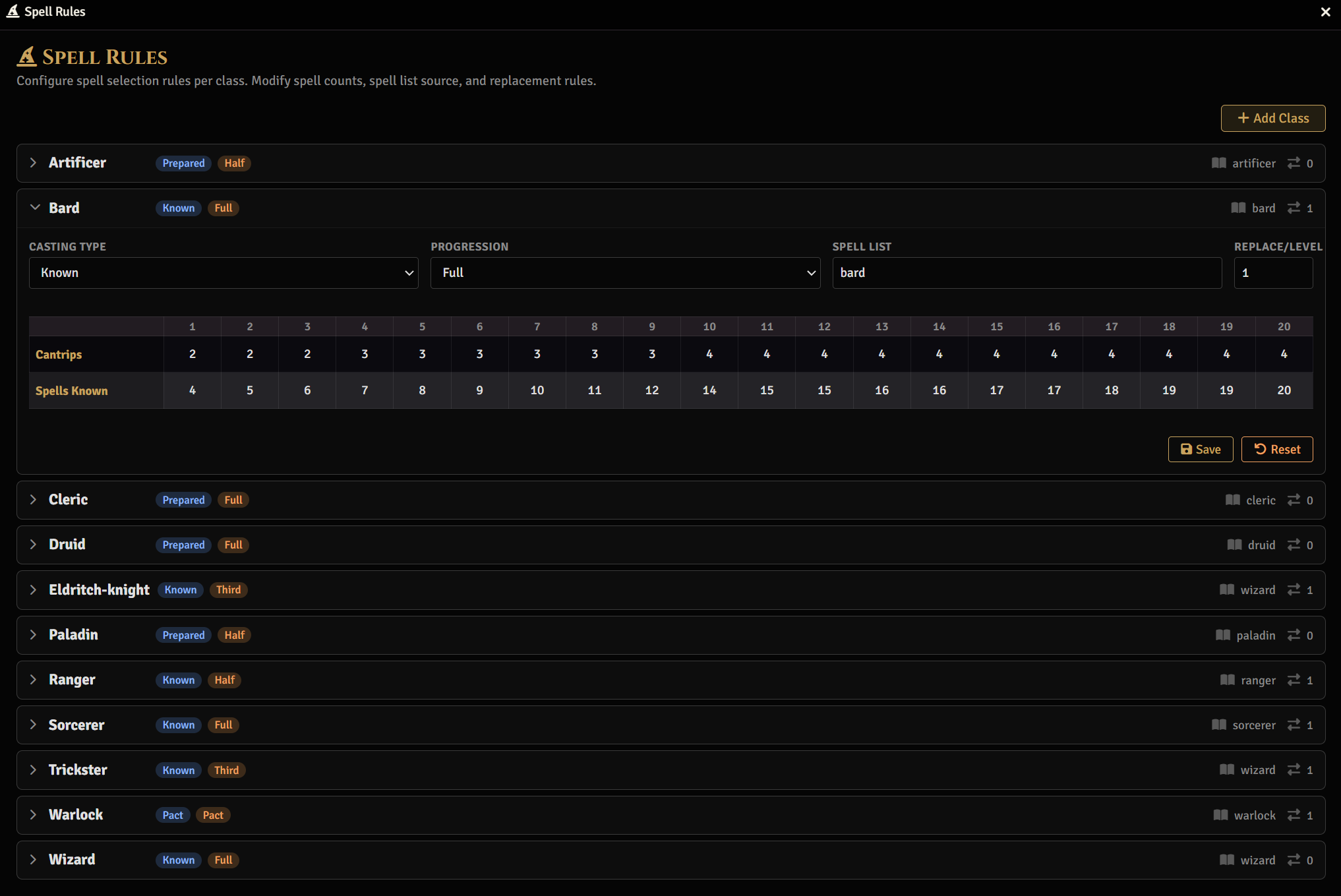 We have rolled out a fully perfected spellcasting setup. Players can browse, filter, and select their spells using an intuitive, card-based visual gallery. For gear, players can easily pick starting equipment or manage inventory updates during level-ups. Everything integrates directly with your existing DND5E compendiums.