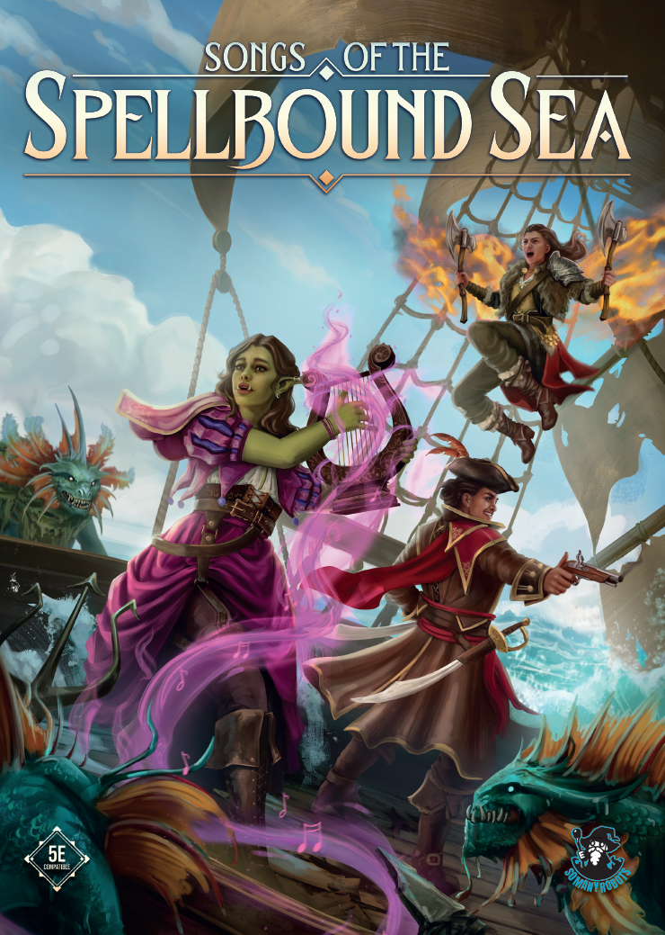 Songs of the Spellbound Sea is a 336-page supplement for D&D 5E, adding 3 new classes, 31 subclasses, 7 species, backgrounds, feats, items, and more. It has four mini-settings with adventure seeds for GMs. It has 300 new spells, including the entirety of the Spells That Don't Suck project. Oh, and a full set of seafaring rules, with naval combat and upgradable ships.