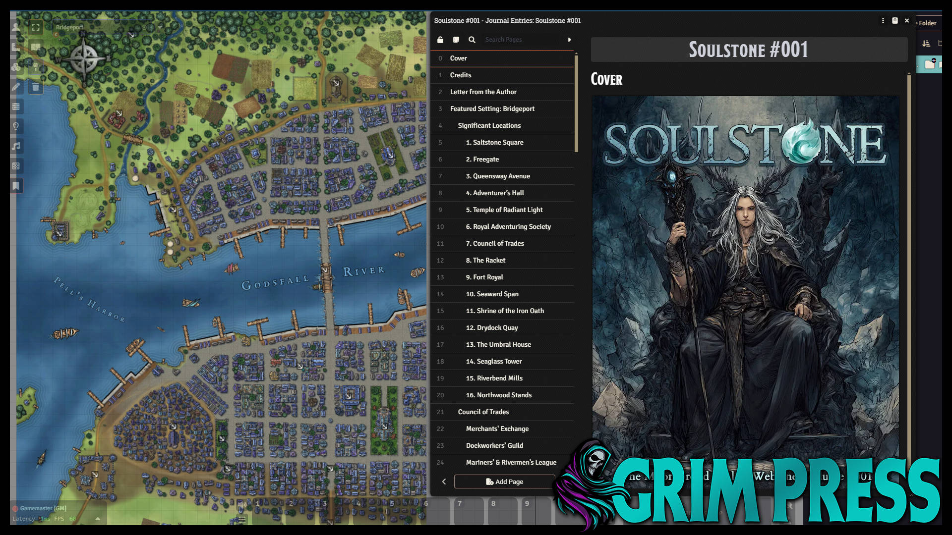 Soulstone #001 opens the doors to the Moonshroud Realms campaign setting with a deep dive into Bridgeport, a Freehold city shaped by trade, guild law, and sanctioned adventuring. From bustling taverns and civic squares to forgotten sewers and hidden operations. This inaugural volume establishes a living setting where authority matters, magic carries weight, and advancement leaves marks on both character and world.