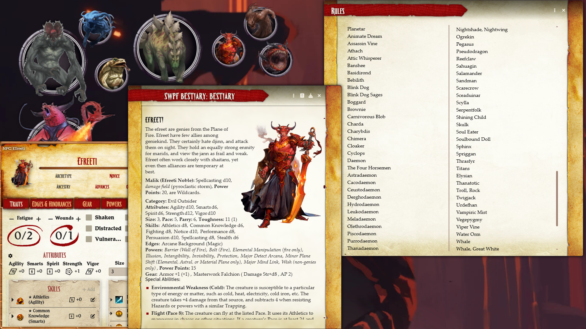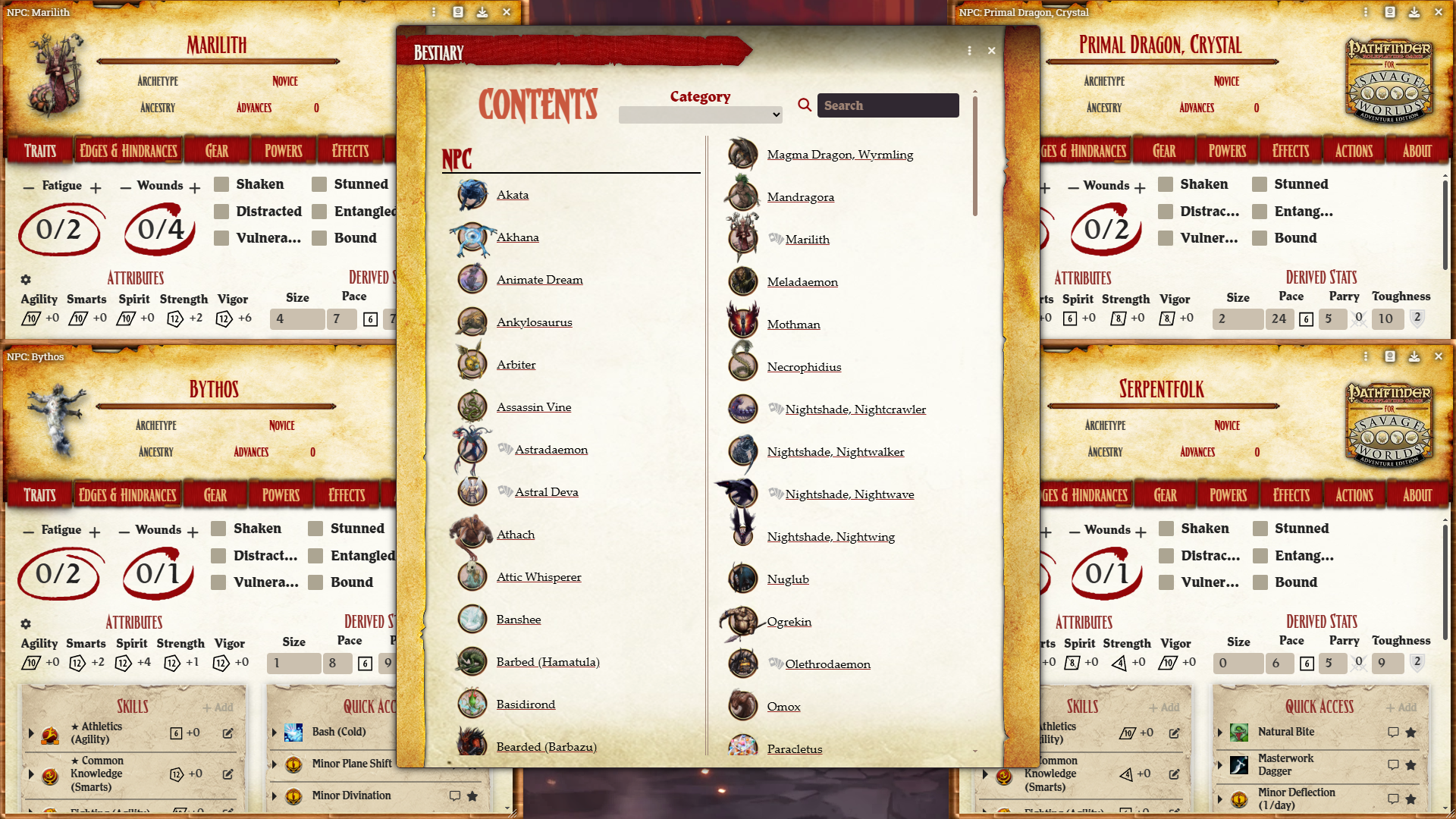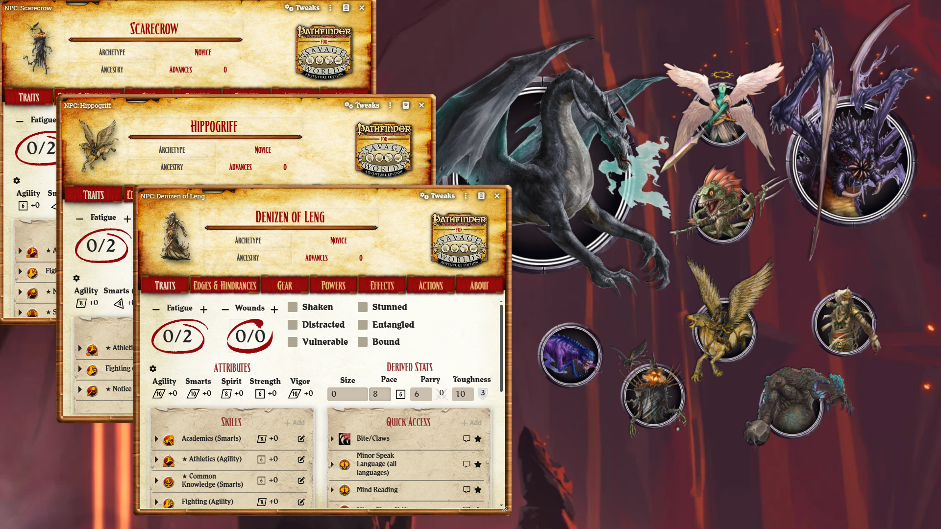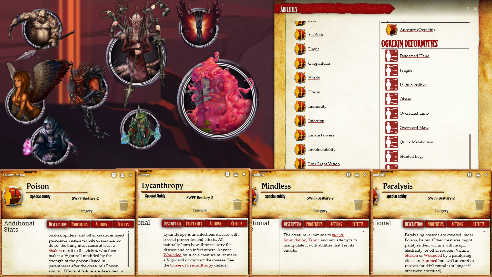 - Tokens and Art for All Creatures: All 164 bestiary entries have art work, static tokens, and dynamic token support.