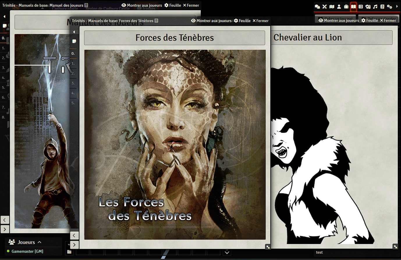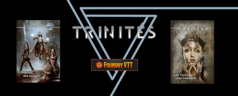 Le module Foundry VTT Trinités - Livre de base comprend l'adaptation des deux livres de base de Trinités : le Manuel des Joueurs et les Forces des Ténèbres.