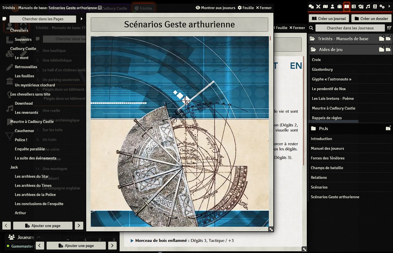 - 31 journaux contenant l'intégralité du Manuel des joueurs, des Forces des Ténèbres et du scénario Geste arthurienne.